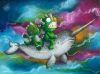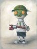 What the heart wants and the heart needs can be found in a Fabio Napoleoni painting. Nostalgia, sorrow and moments that lift the soul are all there for the world to see and experience along with him. The vivid colors and captivating character invite you into and emotional ride that is welcomed by the mind and the heart. Simple landscapes set the stage to the value of emotional attachment that can be compared to no other. Influences from some of this century's greatest artists are hard to find in his pieces, but are drenched deep in the fabric of what puts a Napoleoni painting together. It all started in Ponce, Puerto Rico 1972...Every child loves to spend time playing outside, but this was not an option for Fabio. From birth the artist suffered from asthma so horrific that several times a week he needed allergy shots to prevent severe asthma from consuming him. Many days and weeks were spent on the family sofa surrounded by art supplies given to him by his mother. An artist herself, she noticed that creating art came much easier to her son than it did for her. So, during the times that asthma overwhelmed him, she felt compelled to supply his creative side with the tools needed to flourish. Many events influenced Fabio's artwork but none more than the traumatic events that followed the birth of his second child. His daughter, born with major heart abnormalities, had to face several surgeries to correct issues that could prevent her from having a future. Overwhelmed with his daughters issues and surrounded by an emotional sea of sorrow from other parents in the same situation, Fabio grew. While his wife and daughter slept, Fabio wandered the halls of the childrens care unit looking for a spot where he could sketch out his personal thoughts. From these thoughts a new form of creativity was born. The doors to Fabio Napoleoni's heart were opened for the world to experience. It took a traumatic experience for Fabio to realize what he was missing in his work, and it was emotion. He had all the ingredients to create but none that captivated the soul. With his new ideas and old sketches in hand Fabio added the last ingredient needed...Emotional Experience. With his vibrant and bold use of colors along with many of his characters, Fabio has managed to create an emotional value to his art that had been missing. His paintings could have a thousand titles, and every one would be fitting for the image he has created; but one thing is for sure, you will always find a beautiful heart in every piece of his work. A symbol of his love for his daughter...she lives today and will forever in his art...